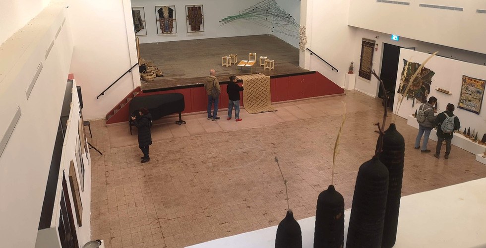 The exhibition "Structura: Weaving in Israel, from Functionalism to Fiber Art" presents large-scale works demonstrating how creative-artistic thinking can stretch boundaries and enrich a limited system of materials and techniques. Moving to the exhibition "Fatma Abu Rumi: Close to Herself" momentarily creates a sense of contrast, from physical textiles to images of textiles in painting. This is the only exhibition in the cluster dealing with the connection between textiles and the human experience, through the creator's personal-cultural interpretation. The connection between the exhibitions enhances the emotional impact of her works, which can be jarring. The exhibitions "Eternal Spring: Mambush Carpet Weaving Workshop, Ein Hod" and "Gur Inbar: Thread from Material" open and close the cluster, offering a thought-provoking dialogue between the recent history of creation and the textile industry that flourished and faded in Israel, and the work of one of the contemporary designers active in the field.